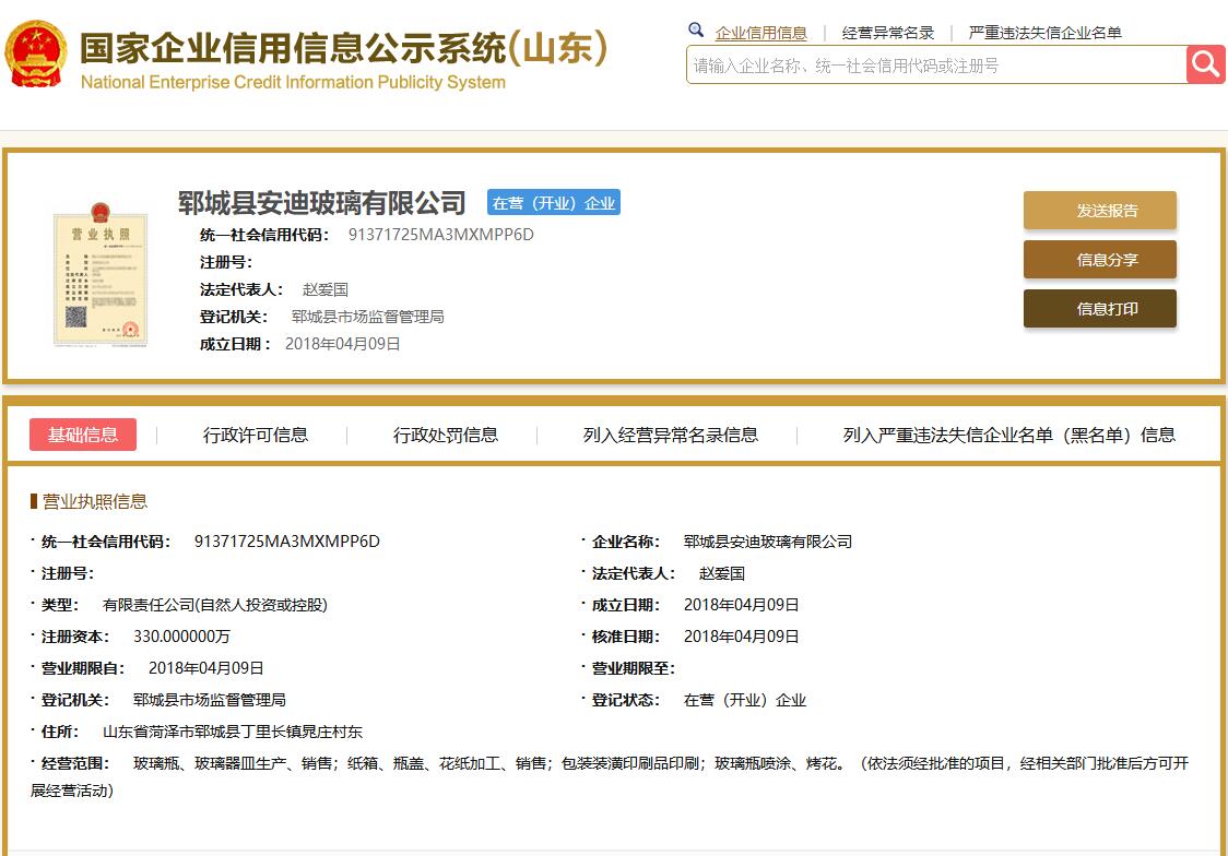 鄆城縣安迪玻璃有限公司是一家生產玻璃酒瓶及綜合性日用玻璃容器制造公司,緊靠220國道,北鄰《水滸》之源----水泊梁山;南依國花之鄉----曹州牡丹園;京九鐵路和日東高速縱橫全境,交通便利,人杰地靈。